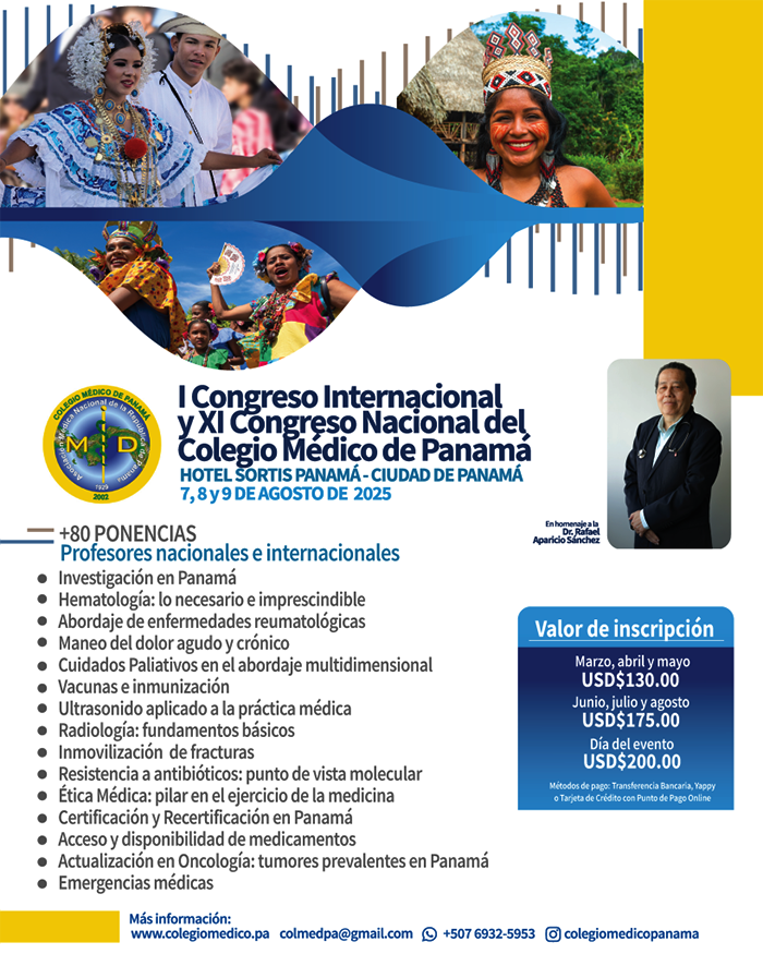 En agosto próximo, el Colegio Médico de Panamá pone a disposición de profesionales de la salud y afines, el I Congreso Internacional y XI Congreso Nacional del Colegio Médico de Panamá.