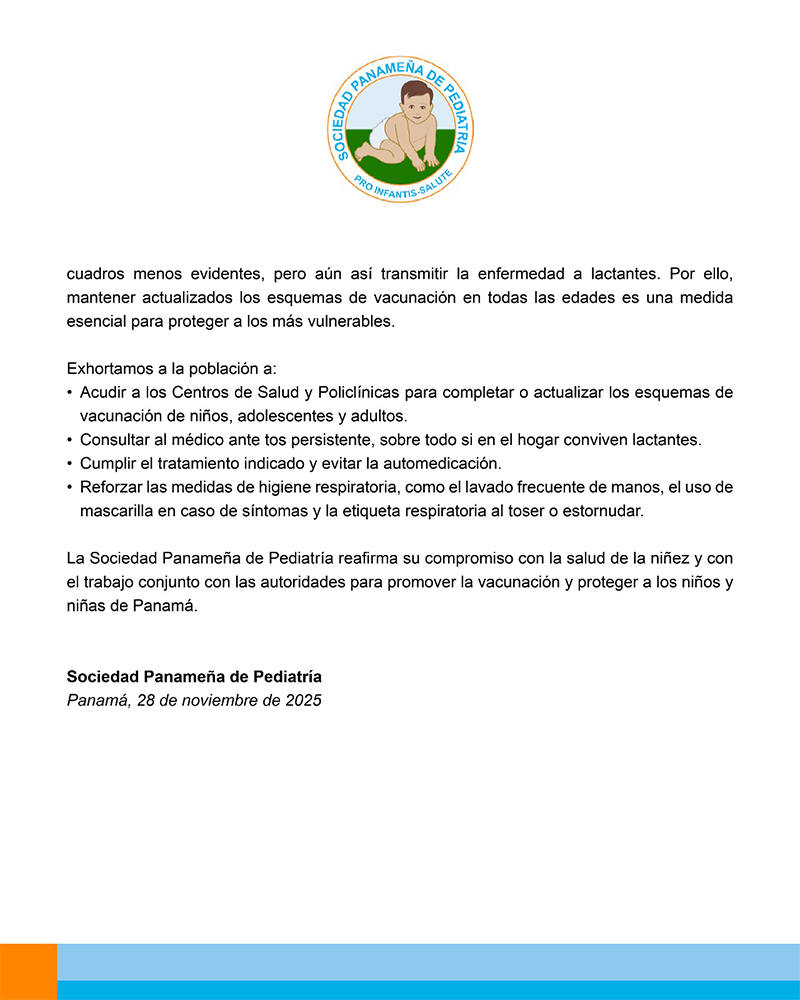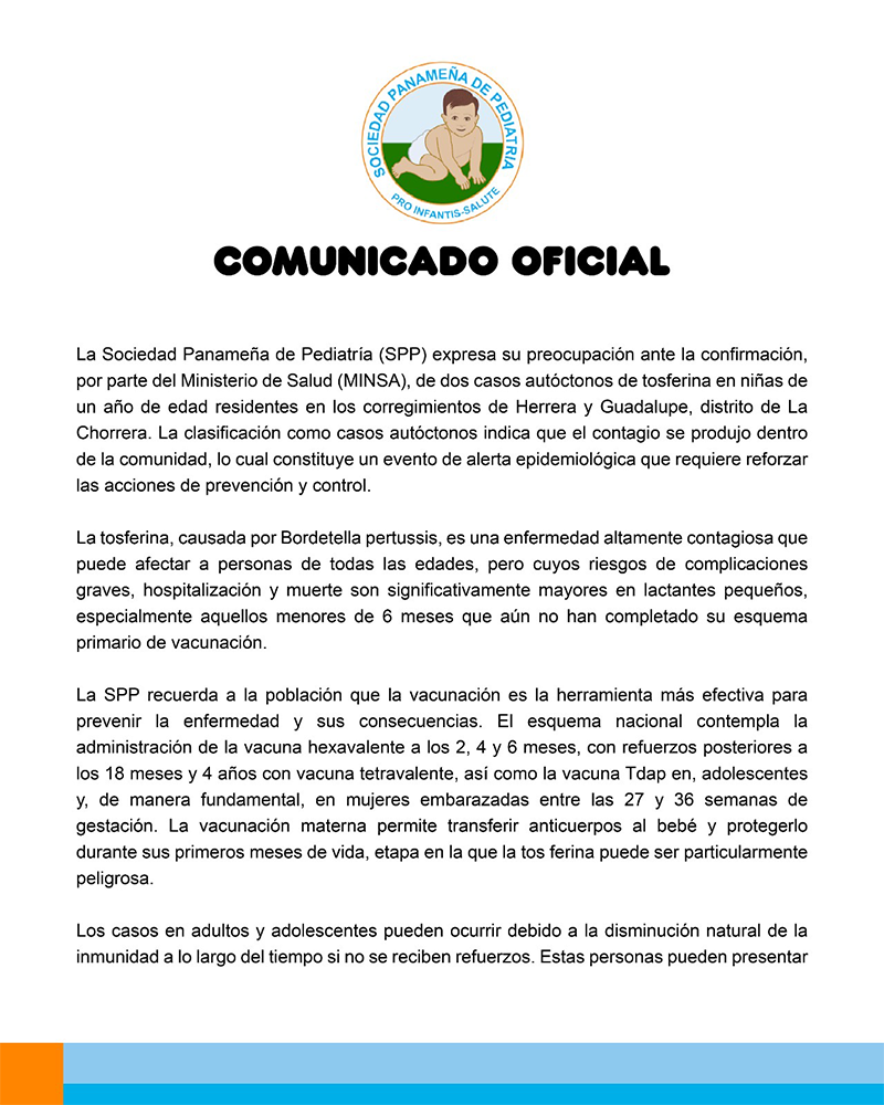 El Ministerio de Salud (MINSA) confirmó 2 casos autóctonos de tosferina en el distrito de La Chorrera.