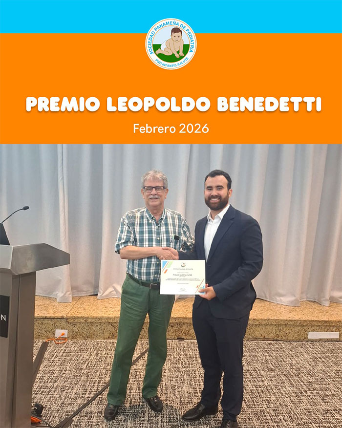 En la reunión administrativa de la Sociedad Panameña de Pediatría realizada el pasado 26 de febrero del 2026, en el salón la Caleta del Hotel Sheraton, con orgullo felicitamos y se hizo entrega del Premio Leopoldo Benedetti a los estudiantes Fernando Carrillo Medina y Marianne Mathieu Pitty, quienes obtuvieron el mayor índice académico de la Promoción Med9 de la Universidad de Panamá. Ambos alcanzaron la calificación de "A" en la Cátedra de Pediatría.